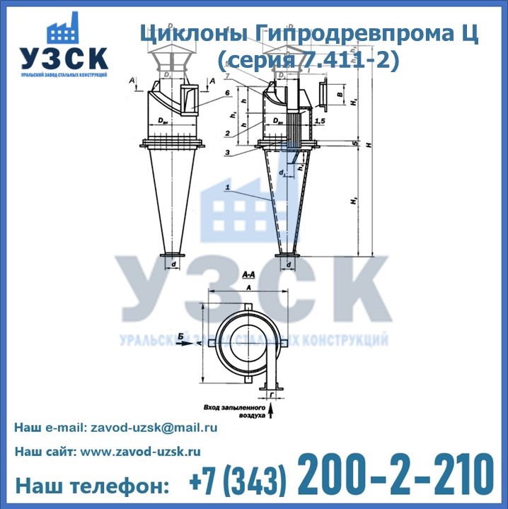 Циклоны Гипродревпрома Ц (серия 7.411-2) высокого качества можно купить в компании «УЗСК» в Байконуре. Наши специалисты предоставят всю необходимую информацию информацию и помогут с выбором модели циклона. Подробные технические характеристики, конструкцию, параметры, ассортимент и стоимость продукции можно также найти на сайте УЗСК.
