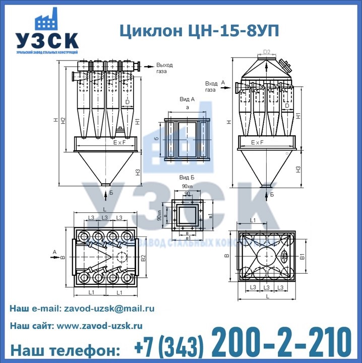 Завод «УЗСК» в Байконуре предлагает большой выбор циклонов ЦН-15-500×8УП и прочих устройств, полностью укомплектованных и готовых к эксплуатации. Мы гарантируем соответствие оборудования всем требованиям ГОСТ и ТУ, износостойкость и высокую производительность предлагаемого оборудования. Уральский Завод Стальных Конструкций изготавливает и продает надежное, эффективное и производительное оборудование, имеющее длительную гарантию и большой эксплуатационный ресурс. Если требуется изготовить циклон нестандартных размеров, то такой вариант выполнения заказа тоже предусмотрен, так как предприятие имеет собственные производственные площади и надежных поставщиков. На все поставляемое или производимое оборудование имеются чертежи и прочая техническая документация. Заказать и купить циклоны или прочее оборудование высокого качества и по доступной цене можно через наш сайт или по указанному в разделе «Контакты» телефону.