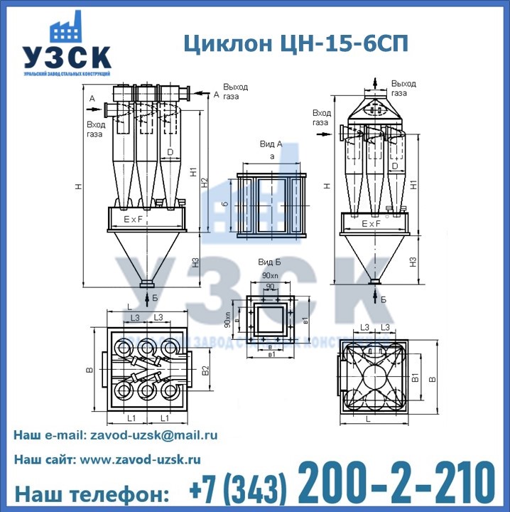 Завод «УЗСК» в Байконуре предлагает большой выбор циклонов ЦН-15-600×6СП и прочих устройств, полностью укомплектованных и готовых к эксплуатации. Мы гарантируем соответствие оборудования всем требованиям ГОСТ и ТУ, износостойкость и высокую производительность предлагаемого оборудования. Уральский Завод Стальных Конструкций изготавливает и продает надежное, эффективное и производительное оборудование, имеющее длительную гарантию и большой эксплуатационный ресурс. Если требуется изготовить циклон нестандартных размеров, то такой вариант выполнения заказа тоже предусмотрен, так как предприятие имеет собственные производственные площади и надежных поставщиков. На все поставляемое или производимое оборудование имеются чертежи и прочая техническая документация. Заказать и купить циклоны или прочее оборудование высокого качества и по доступной цене можно через наш сайт или по указанному в разделе «Контакты» телефону.