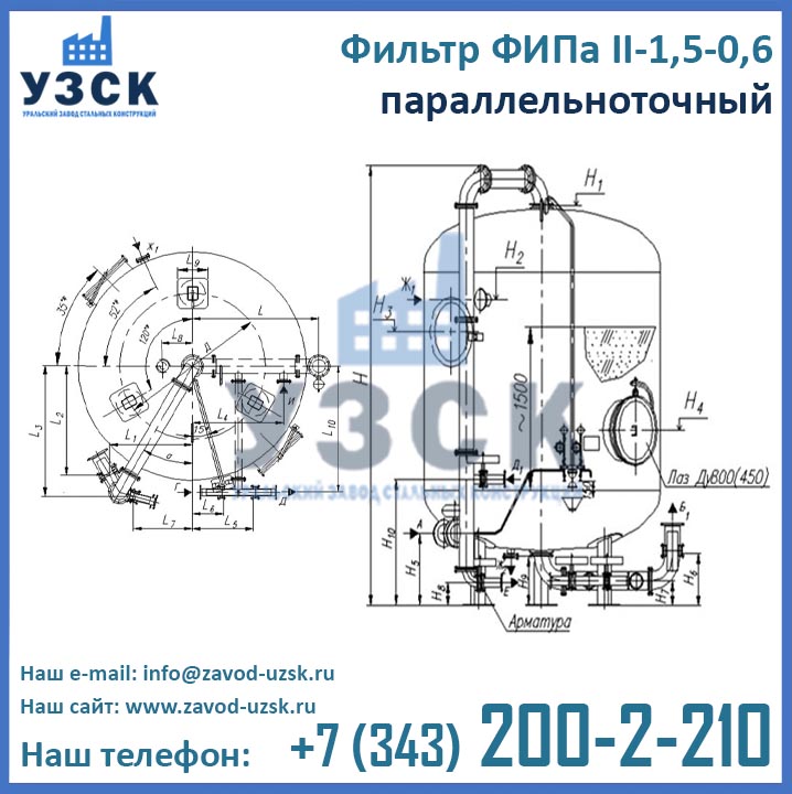 Цены фильтра ФИПа 2 ступени 1,5-0,6 формируются в соответствии со множеством факторов, таких как материальное исполнение, тип распределительных устройств, требуемая комплектация, необходимости доставки и т.д. Для расчета цены фильтров ФИПаII-1,5-0,6 в Байконуре обратитесь в отдел продаж Уральского Завода Стальных Конструкций по координатам, указанным в разделе «Контакты».