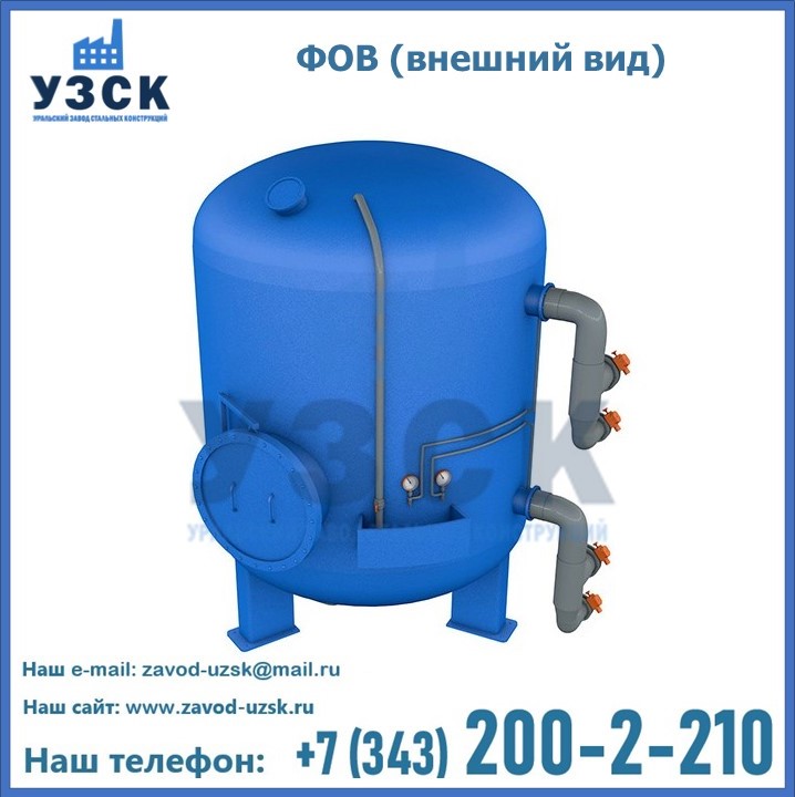 Удаление взвешенных веществ различного уровня дисперсности из рабочих жидкостей эффективно проводит фильтр осветлительный типа ФОВ (скорый или механический) — вертикально-цилиндрической формы установка, разработанная для систем водоподготовки различного класса. Оборудование представляет собой однокамерный агрегат для очистки воды рекомендованный для применения на станциях очистки стоков, в коммунальных котельных, на ТЭЦ, в промышленных отопительных системах и пр. Заказать производство ФОВ фильтров предлагает наш Уральский завод стальных конструкций в Байконуре. У нас можно купить фильтрационное оборудование различного класса и типа, в том числе фильтры ФОВ из нержавеющей стали.