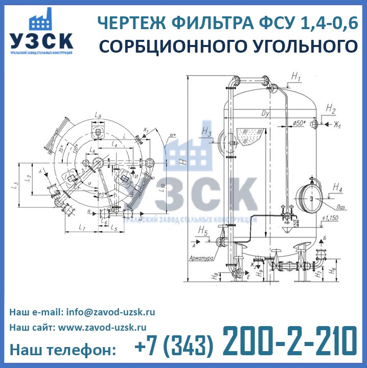 Если вы ищете фильтры ФСУ-1,4-0,6 в Байконуре от изготовителя, то Вы на правильном пути! Уральский завод стальных конструкций – непосредственный производитель сорбционных фильтров ФСУ, предлагающий самые выгодные цены на ФСУ-1.4-0.6 в Байконуре. По окончании процесса производства угольные фильтры проходят гидравлические испытания пробным давлением 0,9 МПа на аттестованном гидростенде, находящимся в собственности завода УЗСК. Мы гарантируем высокое качество выпускаемой продукции, и в этом уже убедились ведущие предприятия промышленного сектора России и стран ЕАЭС (см. раздел «Наши клиенты»).